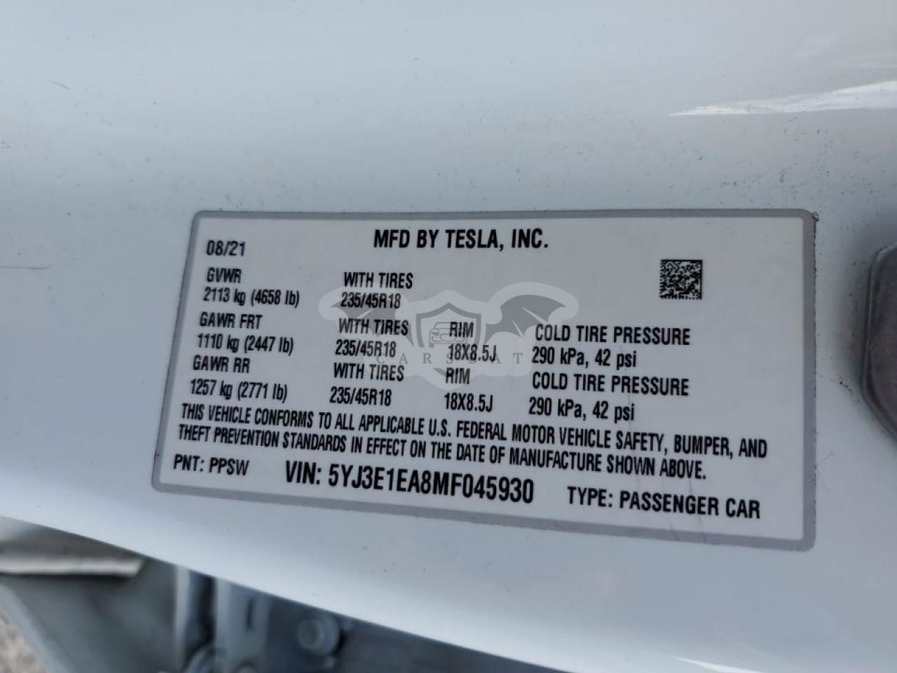 • VIN: 5YJ3E1EA8MF045930