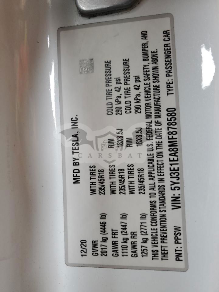 • VIN: 5YJ3E1EA8MF878580
