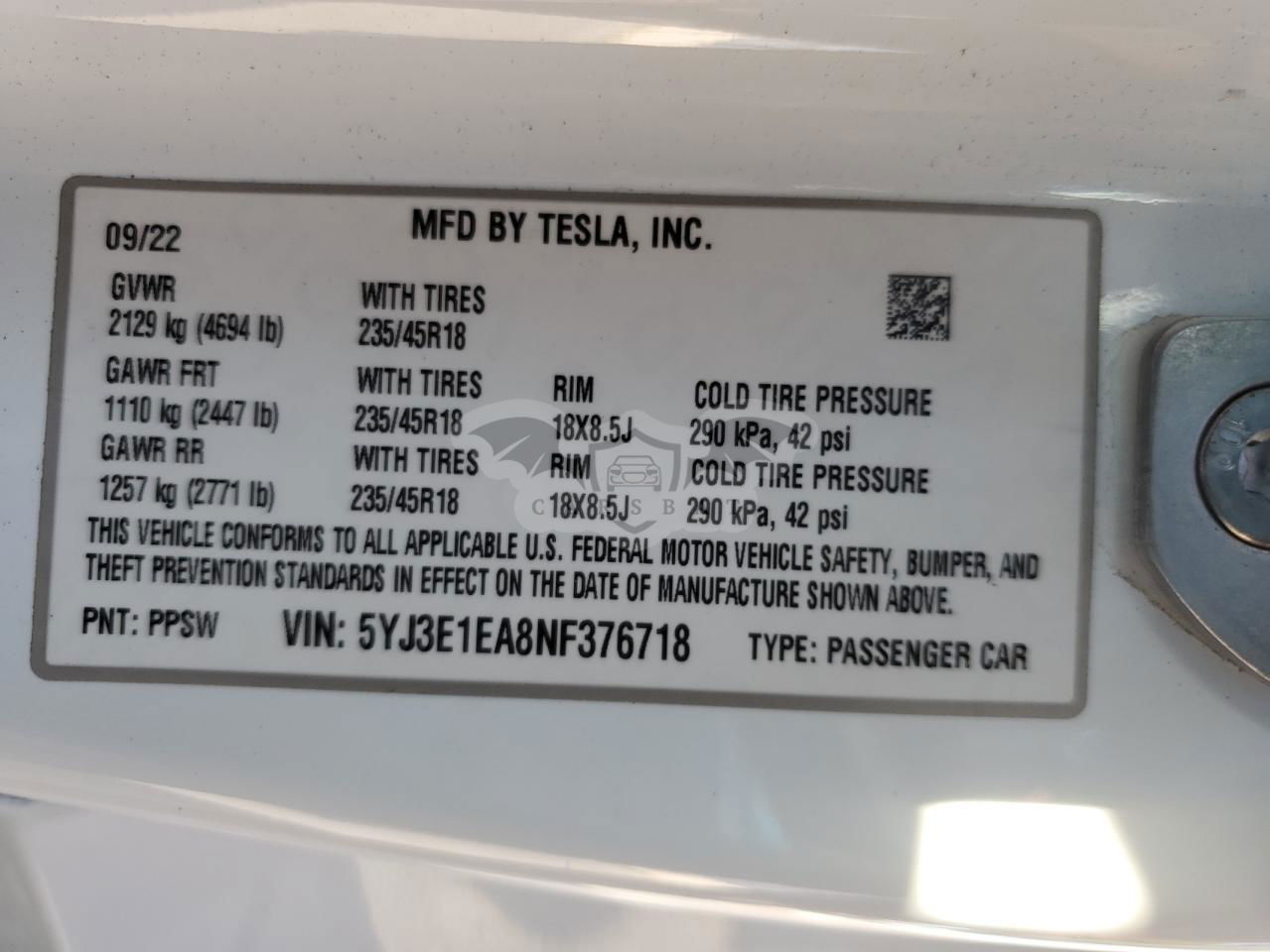 • VIN: 5YJ3E1EA8NF376718