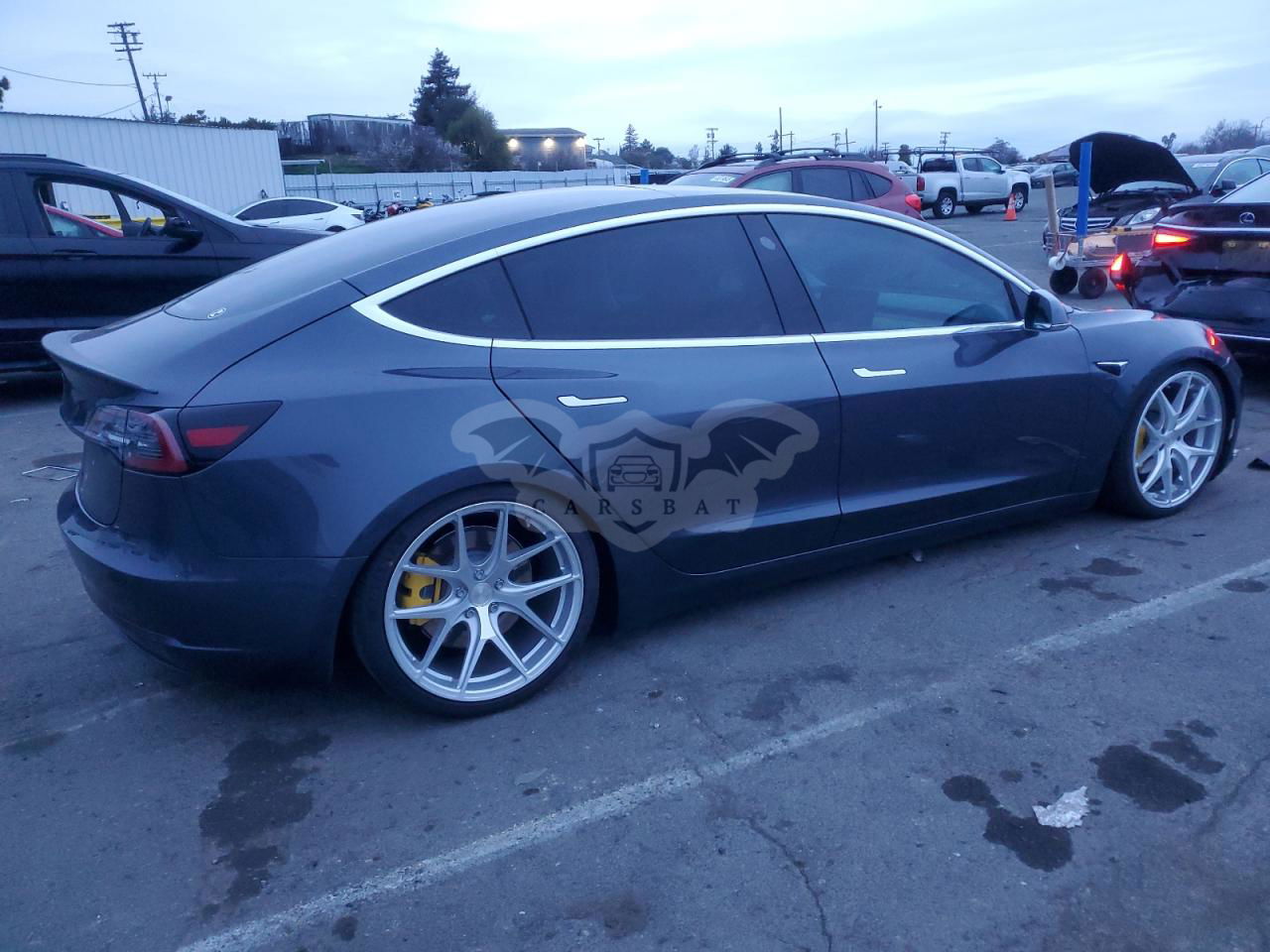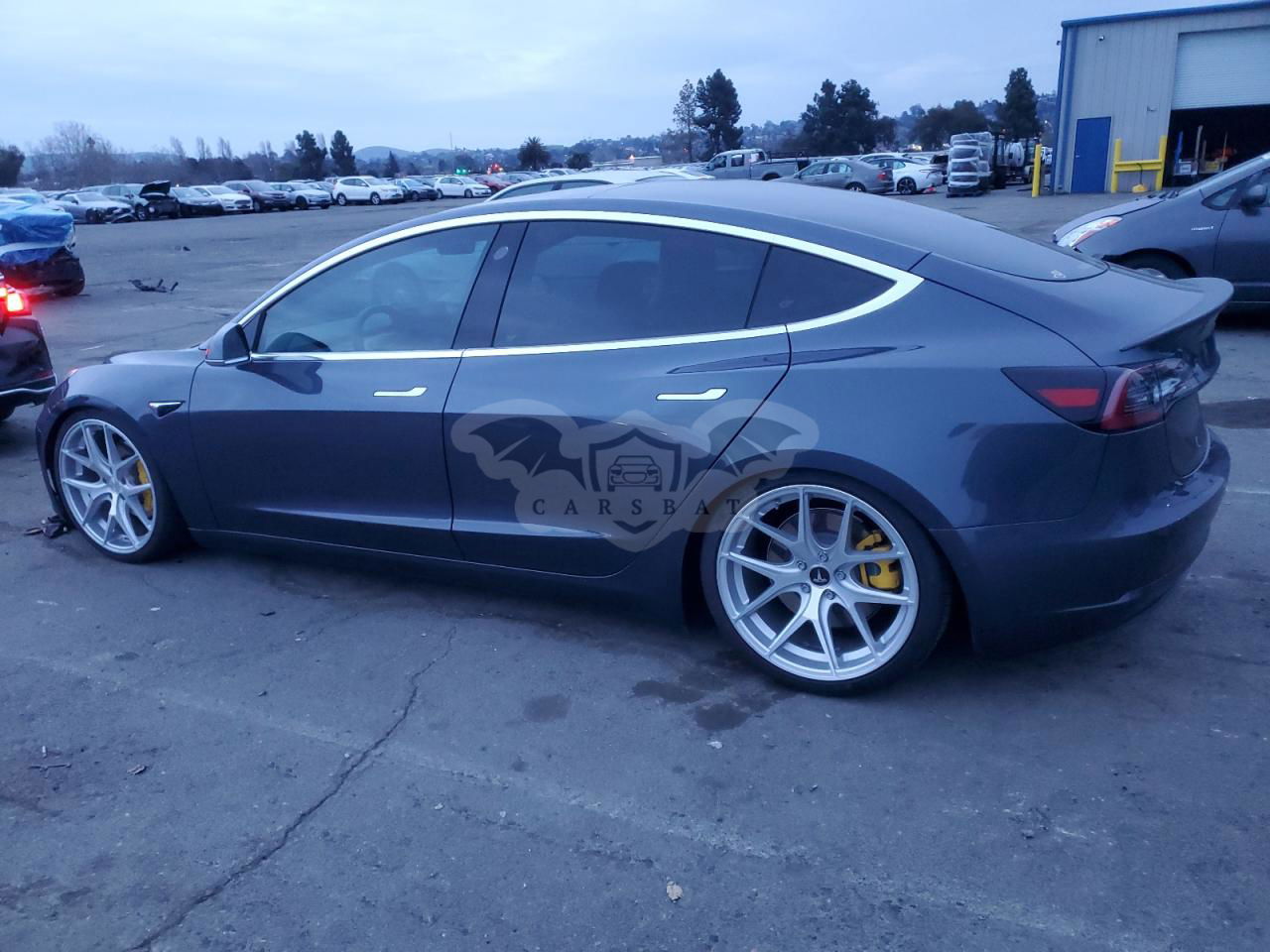 Szary Tesla Model 3 2017 roku | Elektryczny
