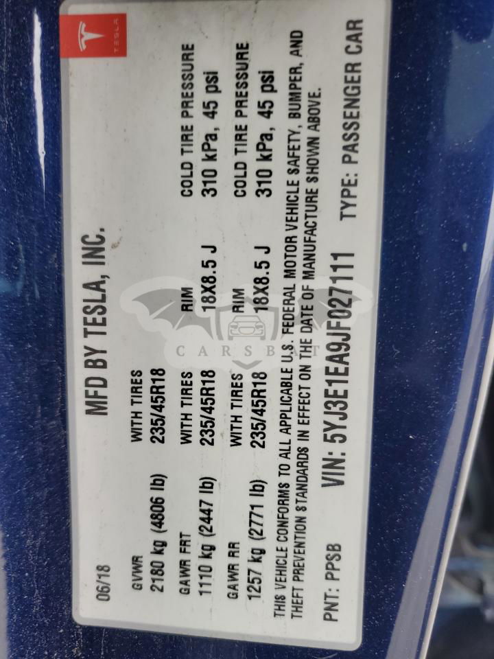 • VIN: 5YJ3E1EA9JF027111