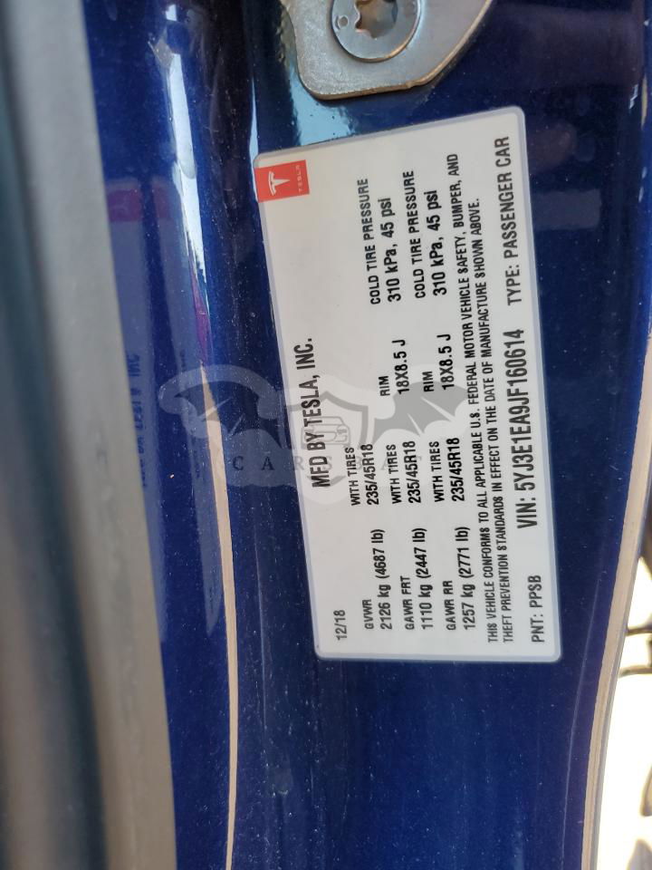 • VIN: 5YJ3E1EA9JF160614