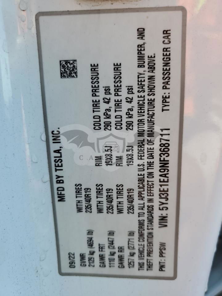 • VIN: 5YJ3E1EA9NF368711