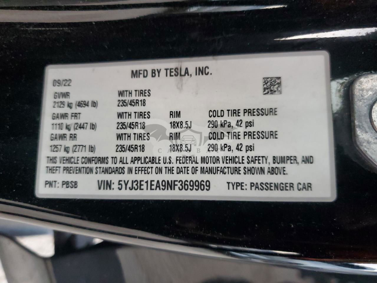 • VIN: 5YJ3E1EA9NF369969