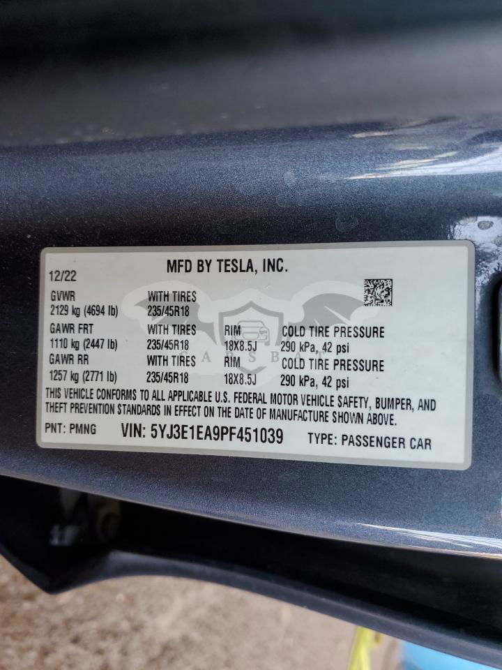 • VIN: 5YJ3E1EA9PF451039