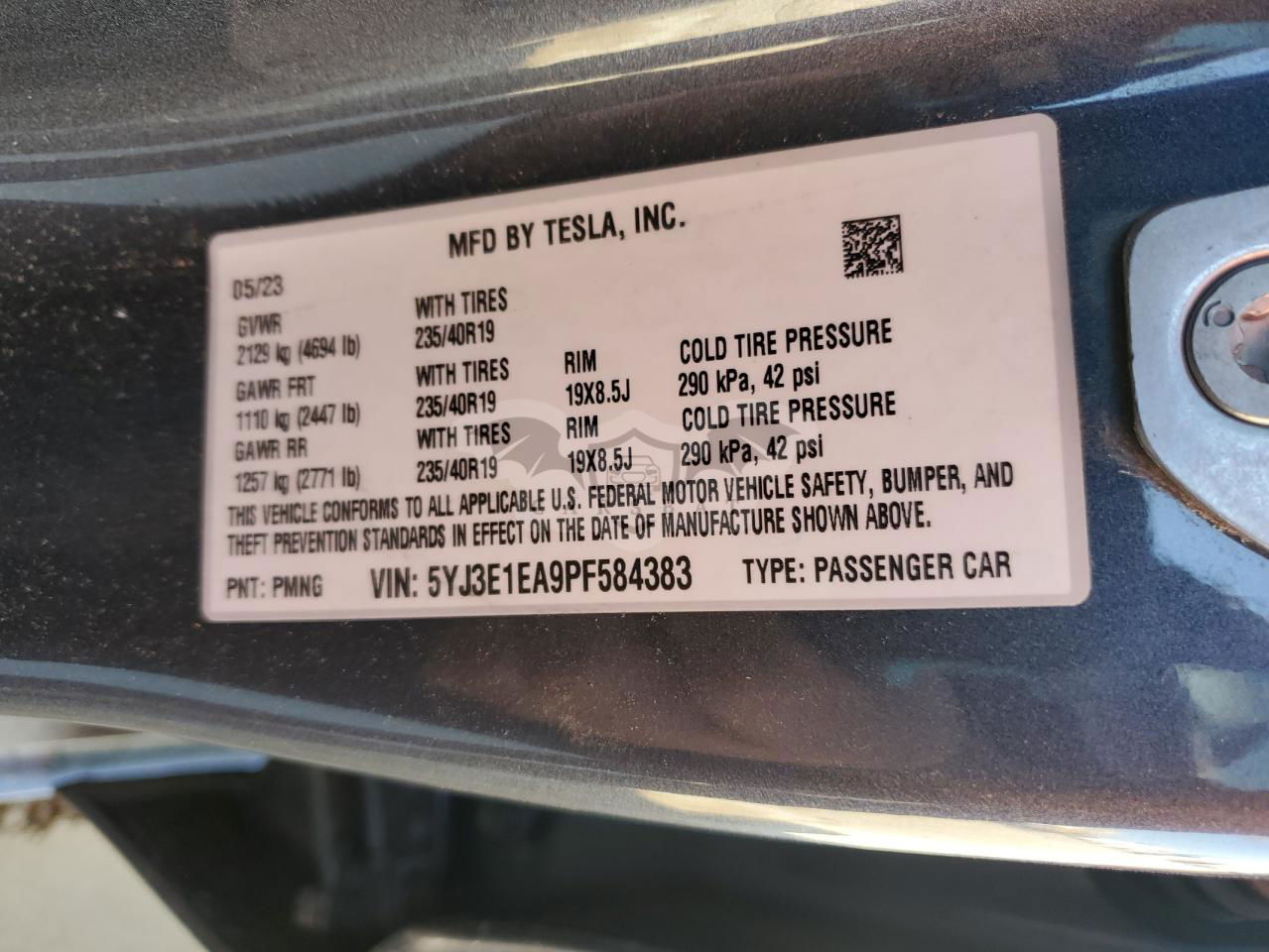 • VIN: 5YJ3E1EA9PF584383