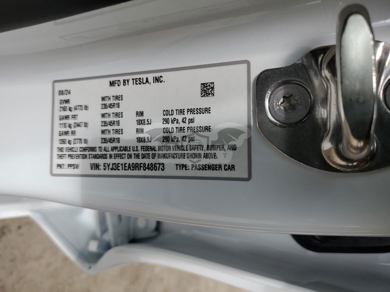 • VIN: 5YJ3E1EA9RF848673