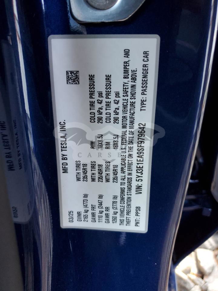 • VIN: 5YJ3E1EA9SF979642