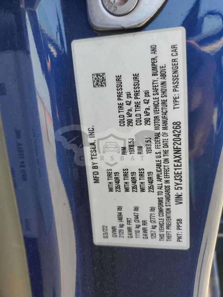 • VIN: 5YJ3E1EAXNF204268