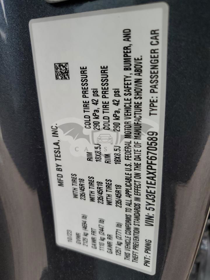 • VIN: 5YJ3E1EAXPF670589