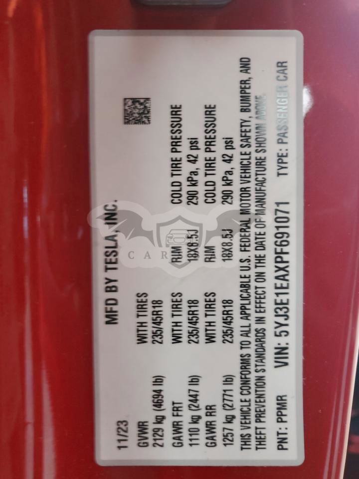 • VIN: 5YJ3E1EAXPF691071