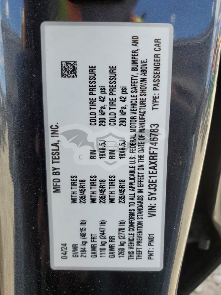 • VIN: 5YJ3E1EAXRF746783