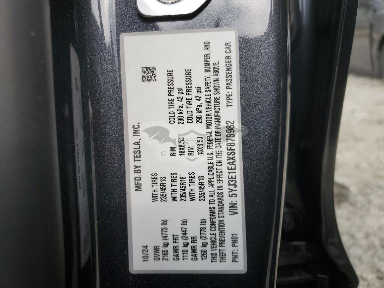 • VIN: 5YJ3E1EAXSF878982