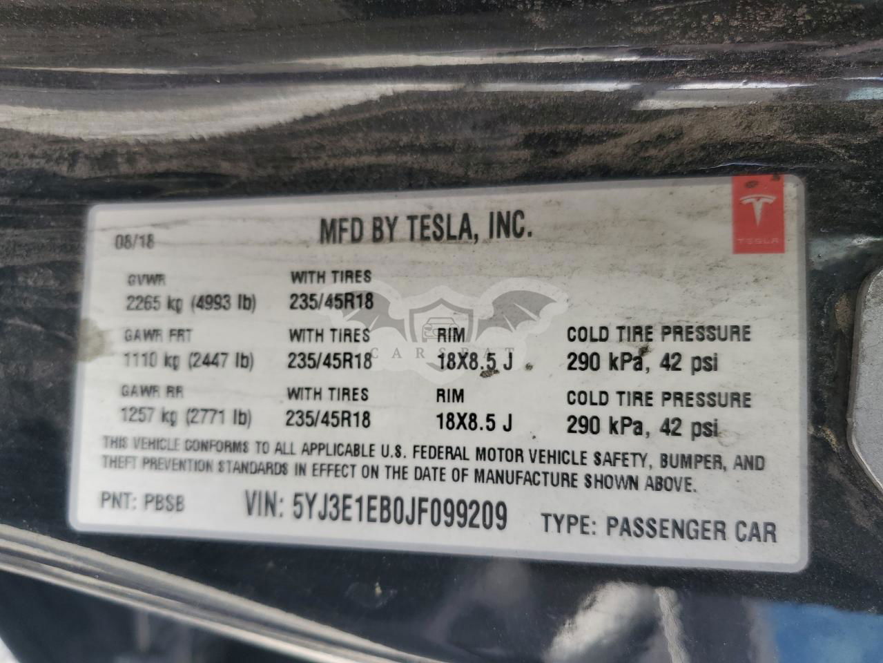 • VIN: 5YJ3E1EB0JF099209