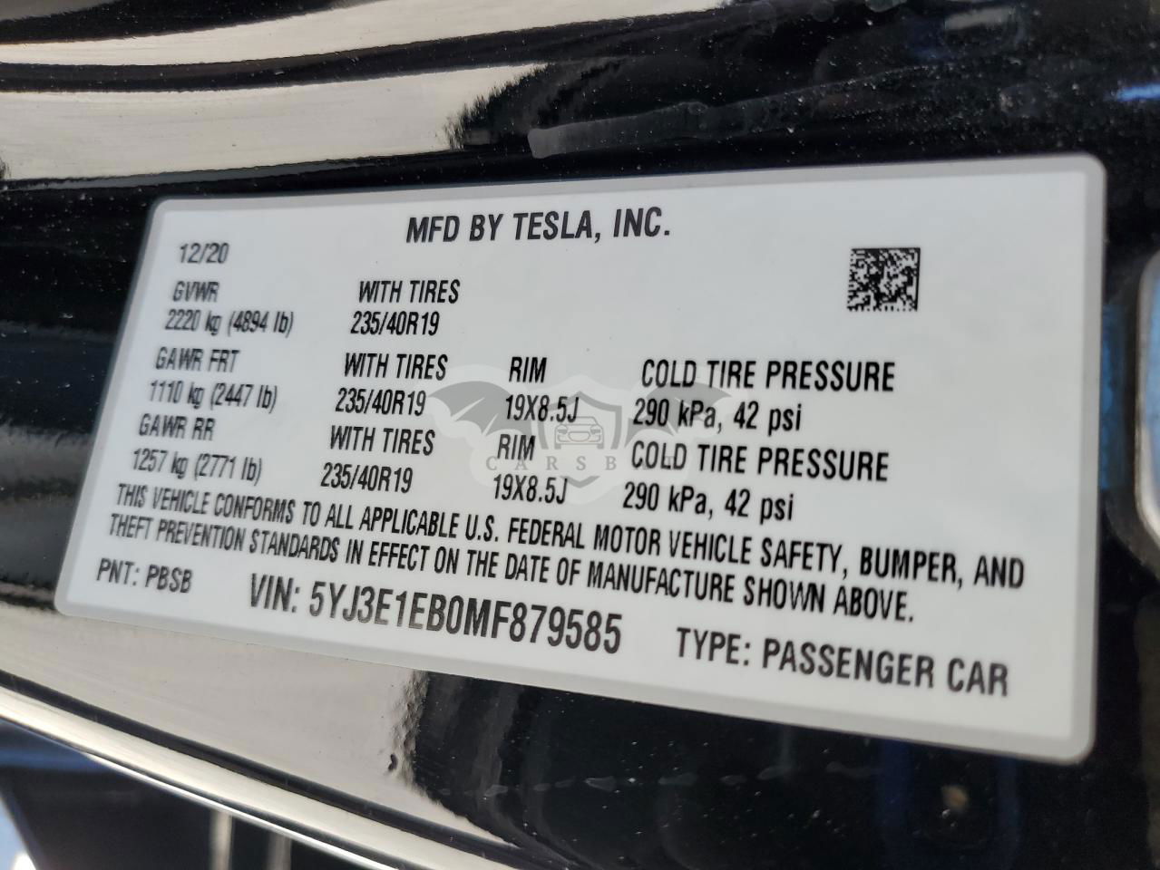 • VIN: 5YJ3E1EB0MF879585