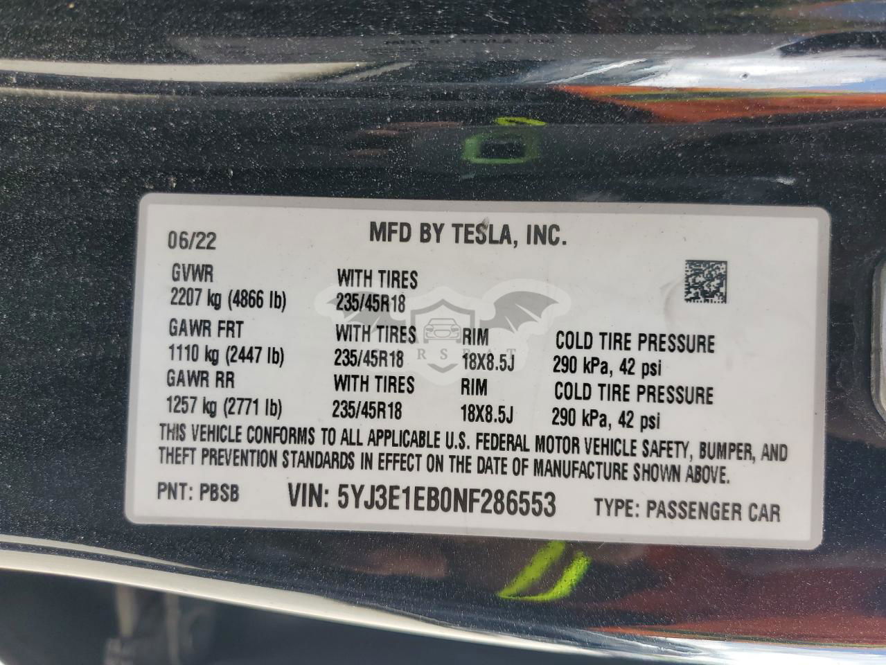 • VIN: 5YJ3E1EB0NF286553