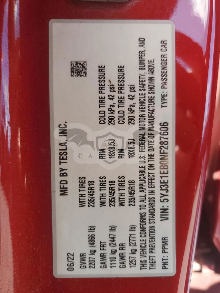 • VIN: 5YJ3E1EB0NF287606