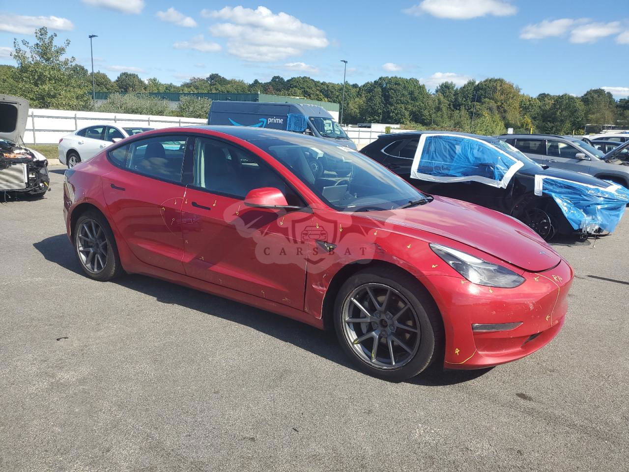 Czerwony Tesla Model 3 2022 roku | Elektryczny