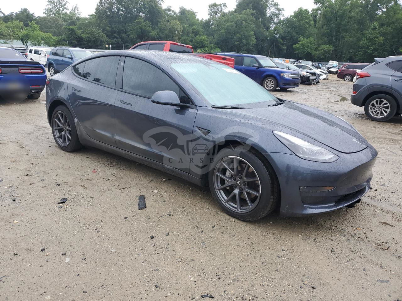 Szary Tesla Model 3 2022 roku | Elektryczny