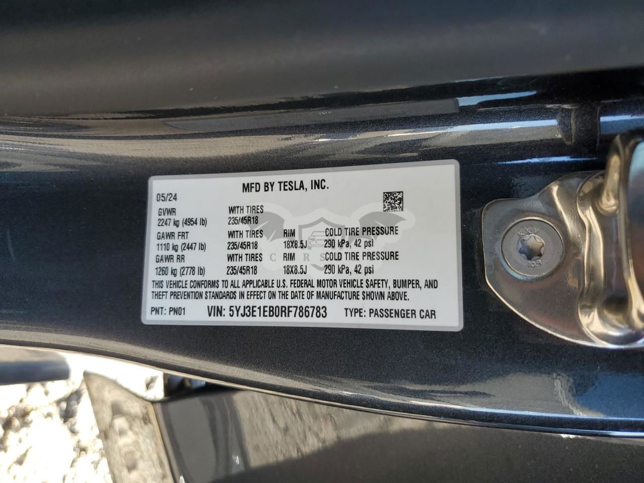 • VIN: 5YJ3E1EB0RF786783