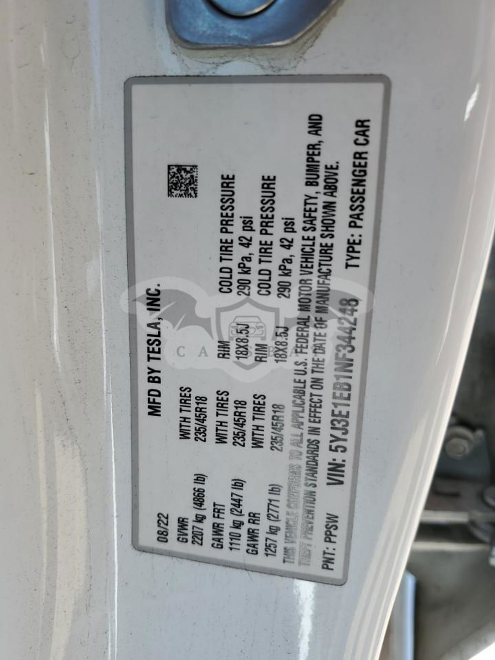 • VIN: 5YJ3E1EB1NF344248