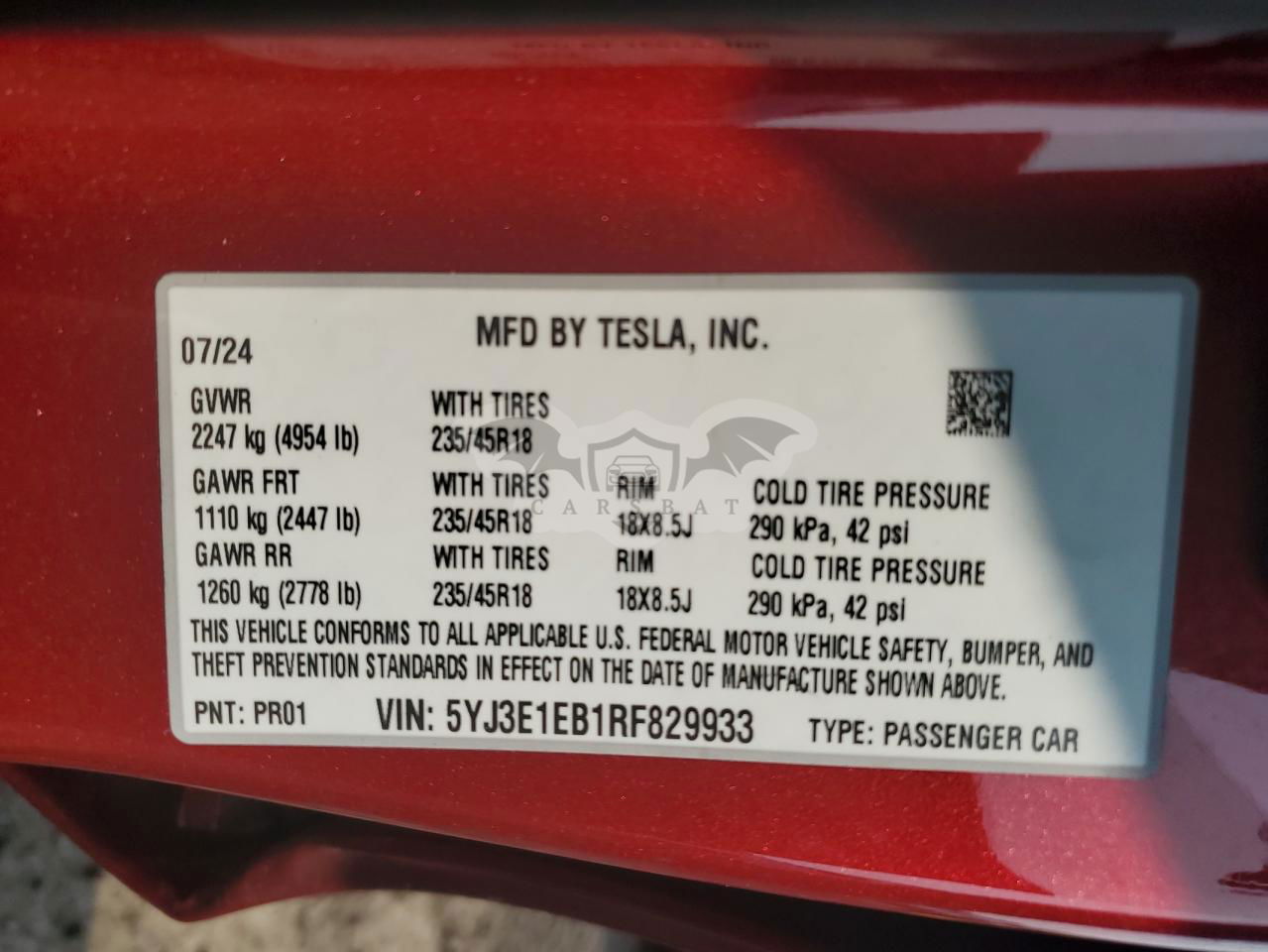 • VIN: 5YJ3E1EB1RF829933