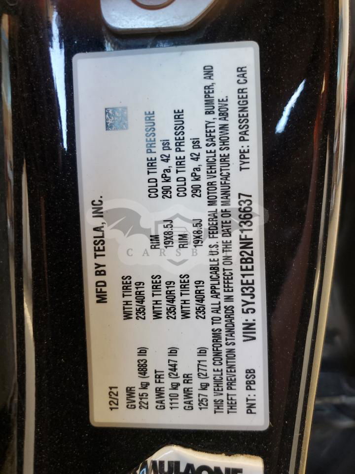 • VIN: 5YJ3E1EB2NF136637
