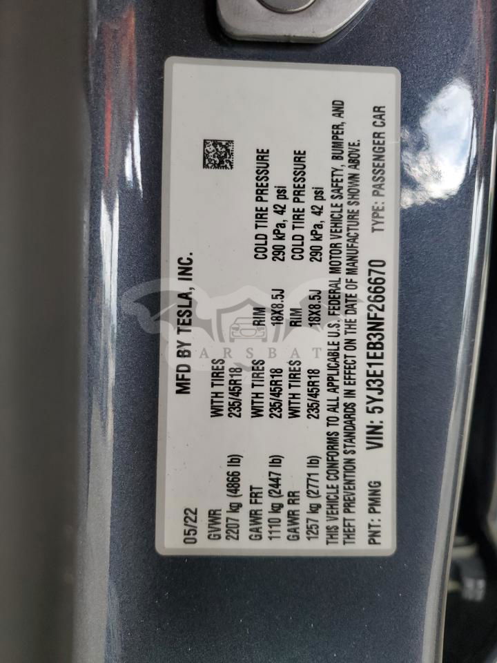 • VIN: 5YJ3E1EB3NF266670