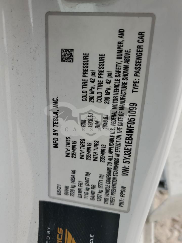 • VIN: 5YJ3E1EB4MF051099