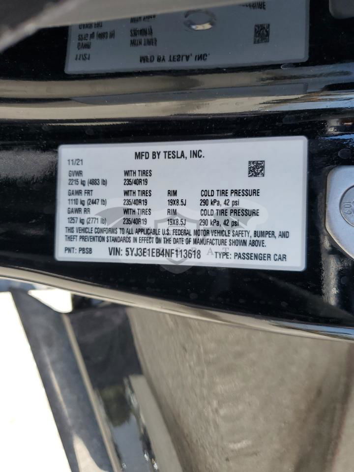 • VIN: 5YJ3E1EB4NF113618
