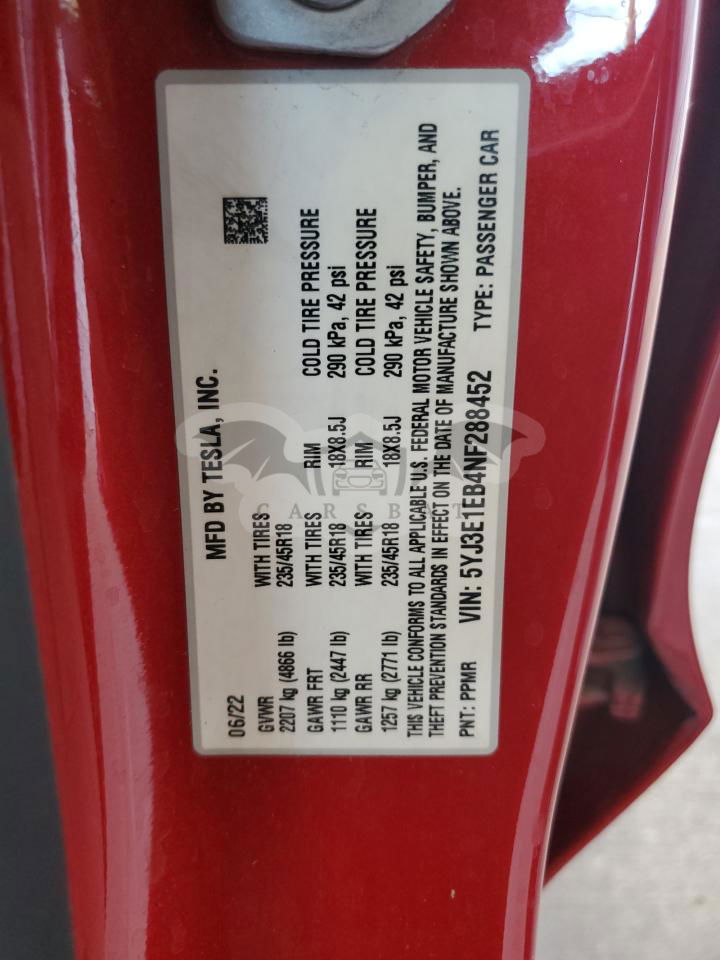 • VIN: 5YJ3E1EB4NF288452