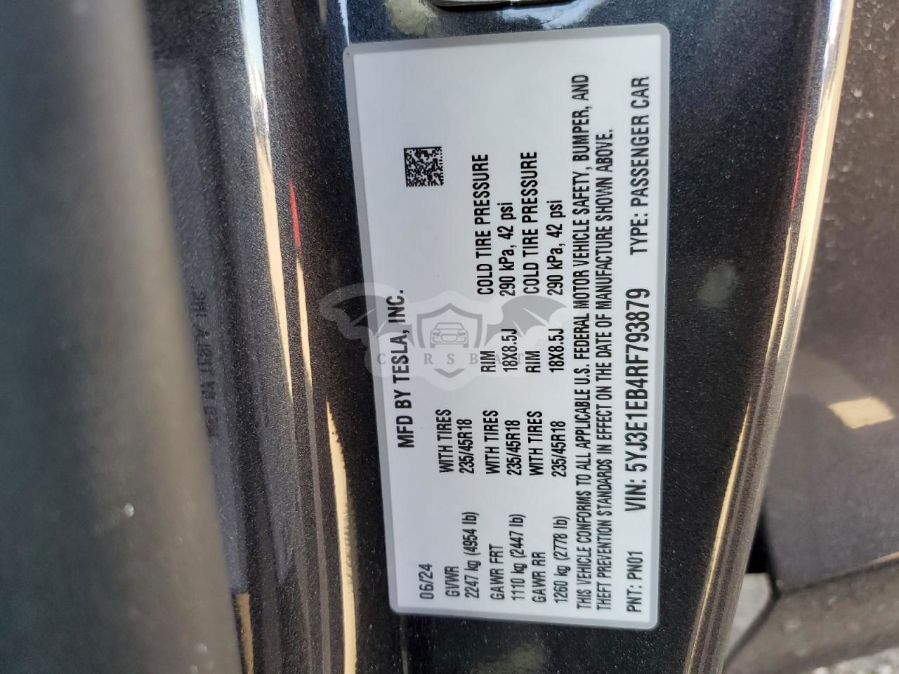• VIN: 5YJ3E1EB4RF793879