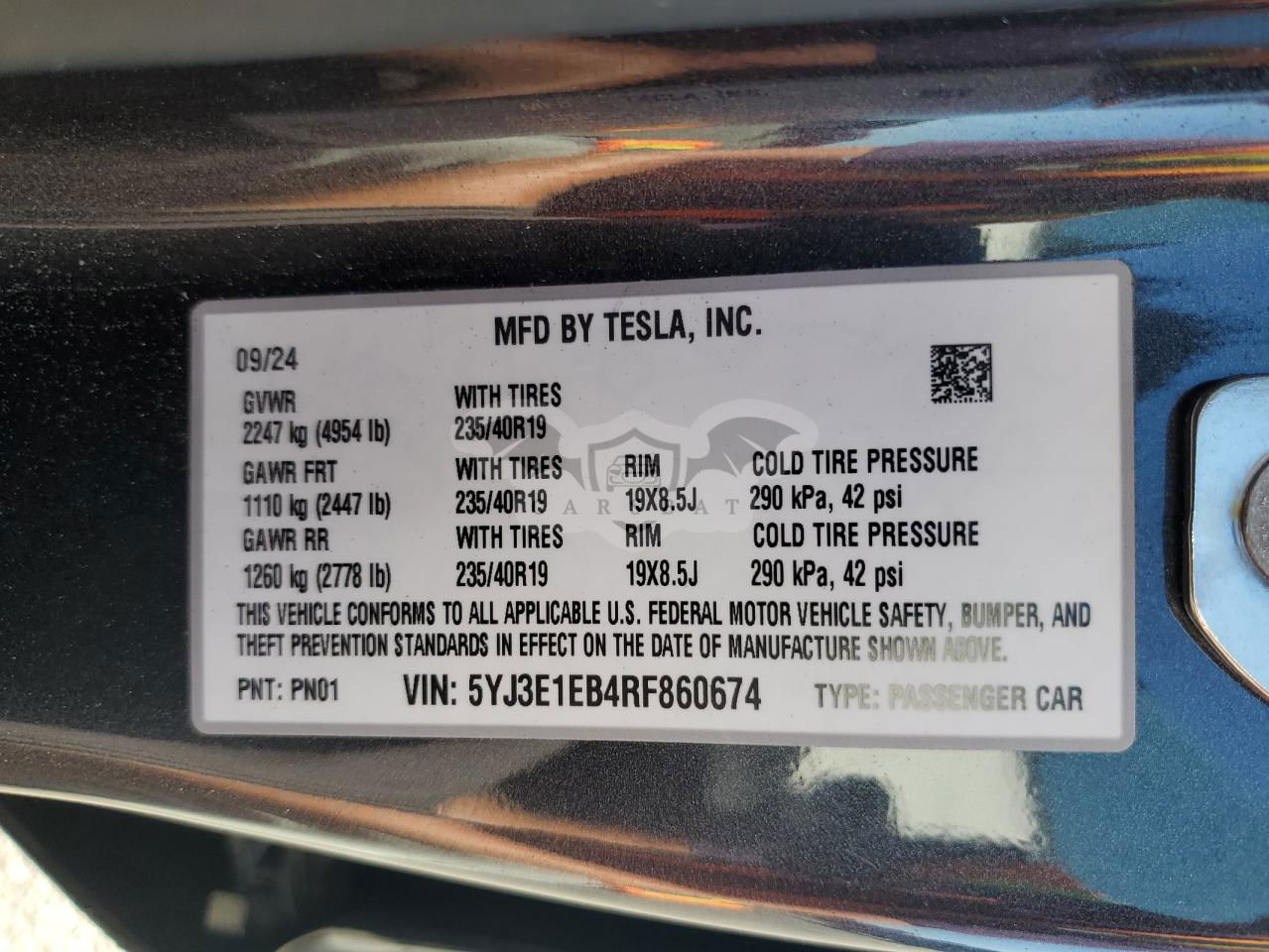 • VIN: 5YJ3E1EB4RF860674