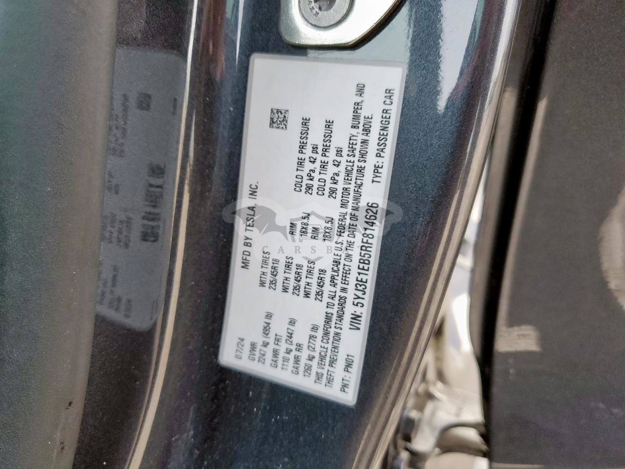 • VIN: 5YJ3E1EB5RF814626