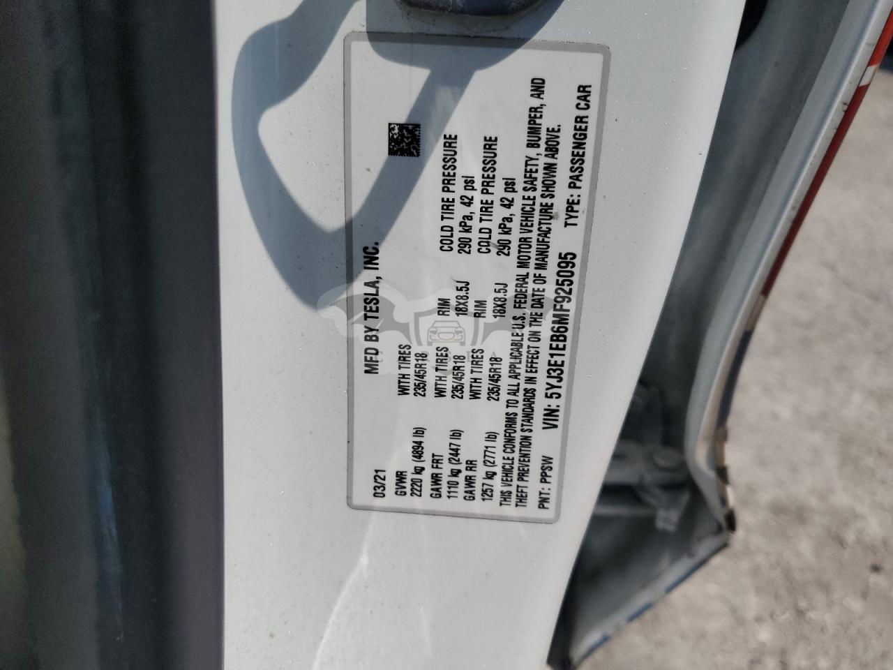 • VIN: 5YJ3E1EB6MF925095