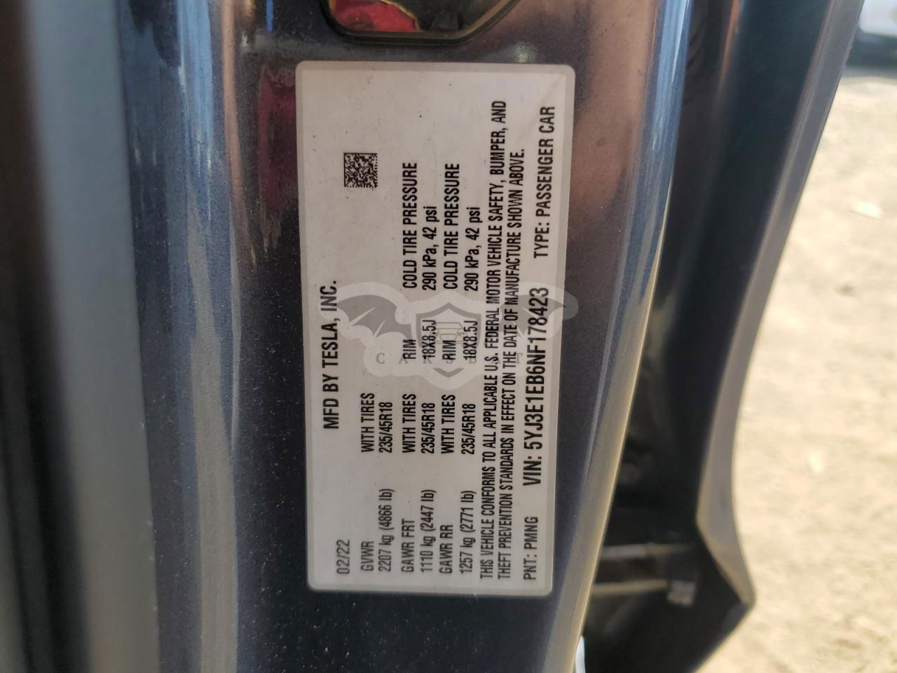 • VIN: 5YJ3E1EB6NF178423