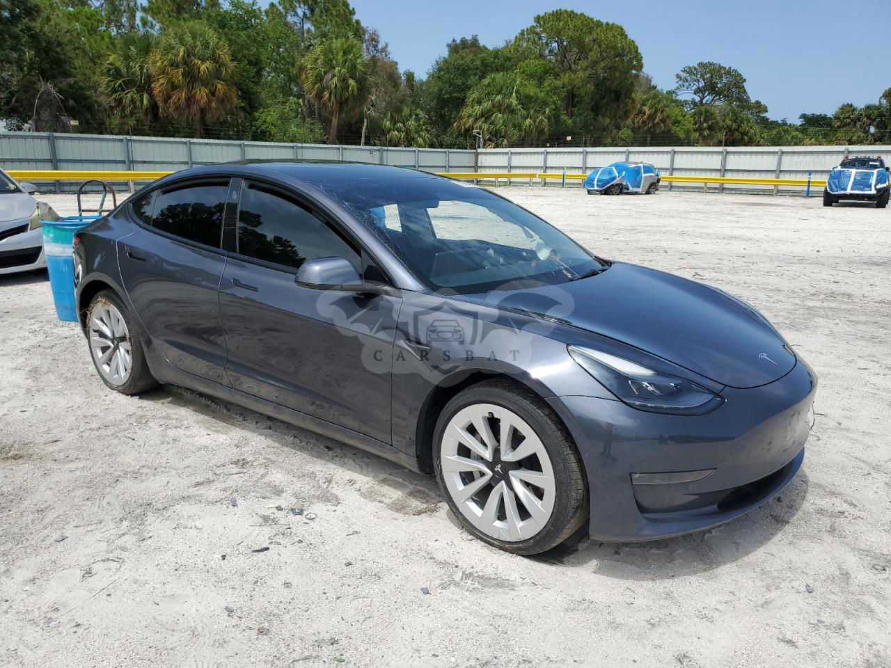 Szary Tesla Model 3 2022 roku | Elektryczny