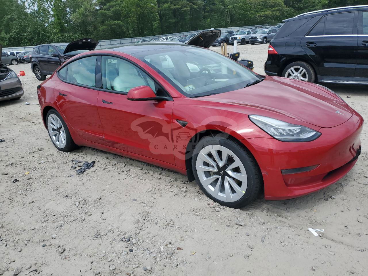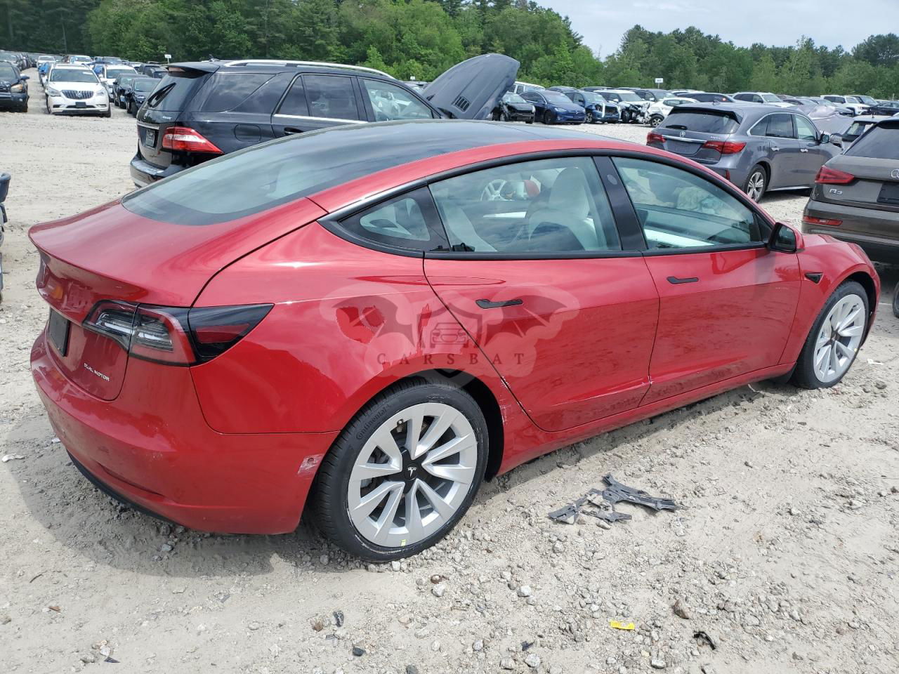 Czerwony Tesla Model 3 2022 roku | Elektryczny