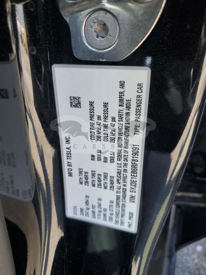 • VIN: 5YJ3E1EB6RF819091