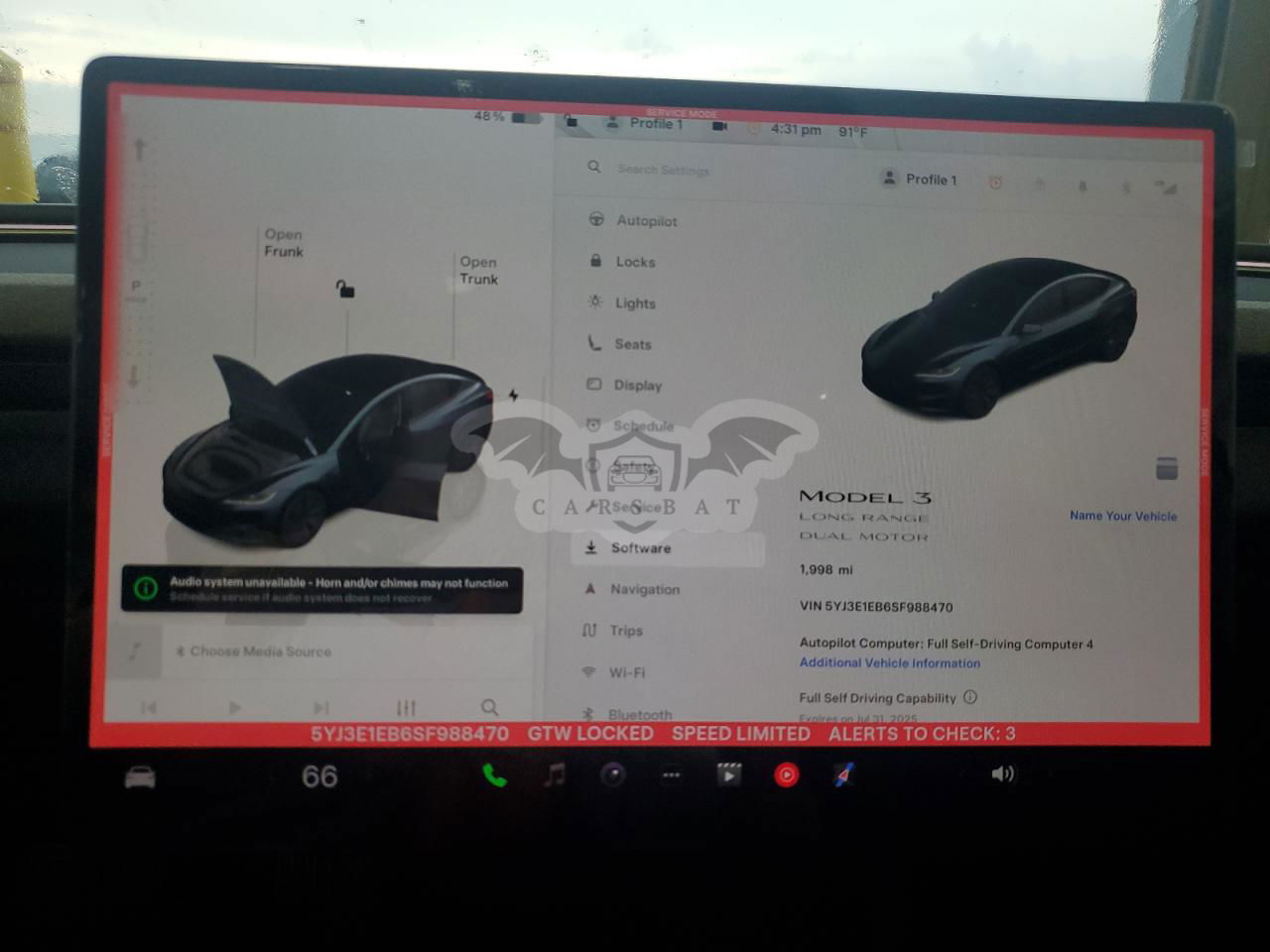 • VIN: 5YJ3E1EB6SF988470