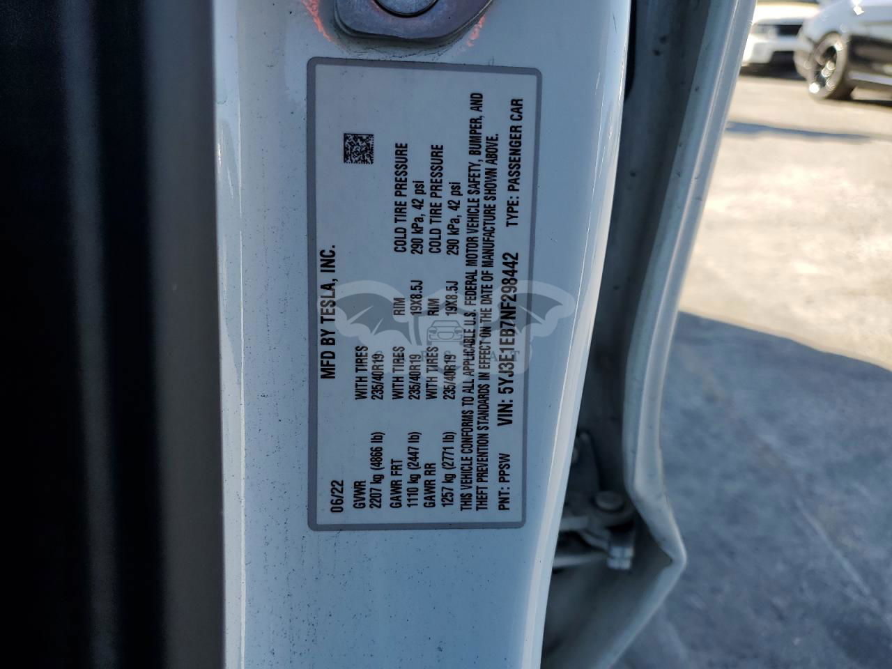 • VIN: 5YJ3E1EB7NF298442