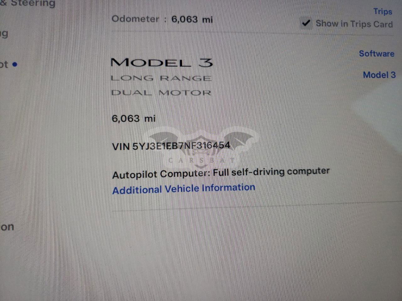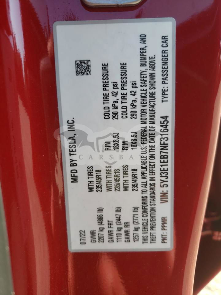 • VIN: 5YJ3E1EB7NF316454