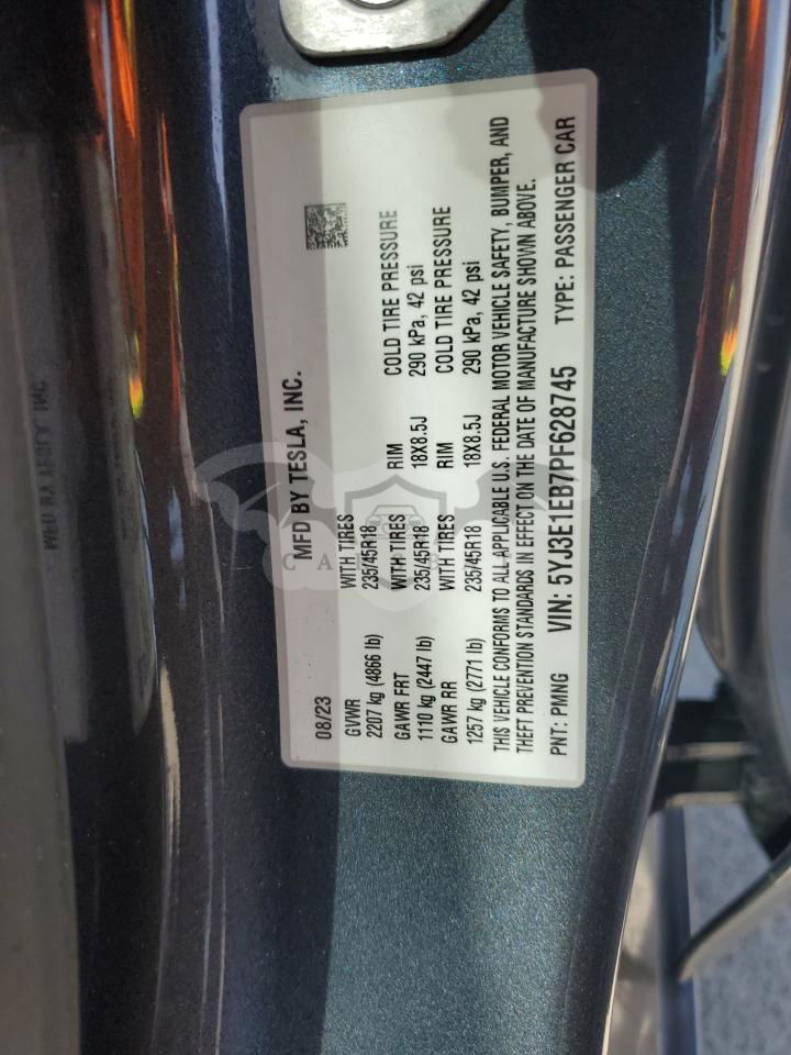 • VIN: 5YJ3E1EB7PF628745