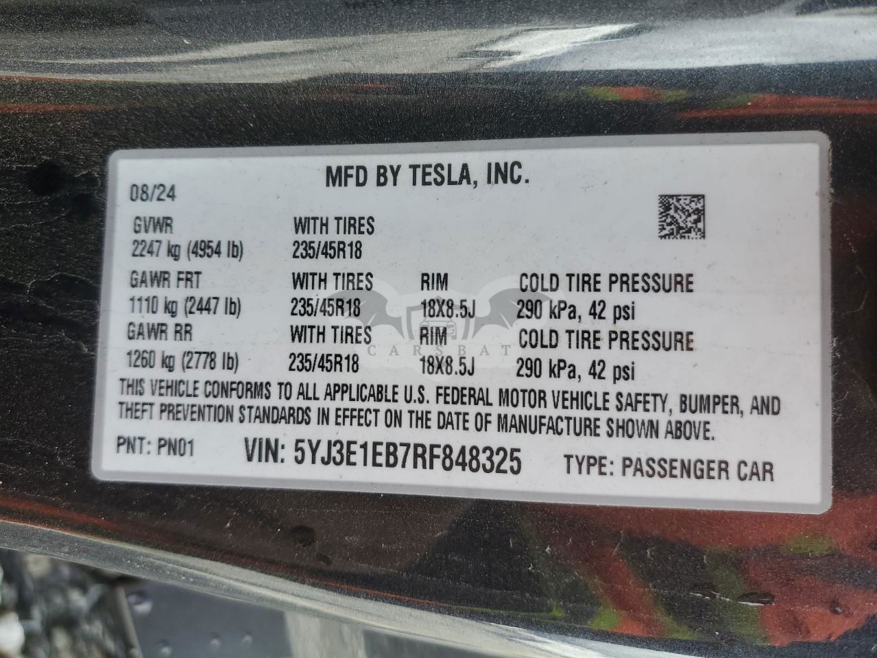 • VIN: 5YJ3E1EB7RF848325