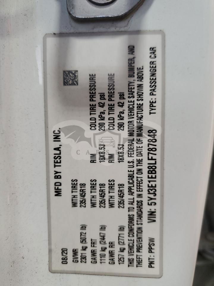 • VIN: 5YJ3E1EB8LF787848