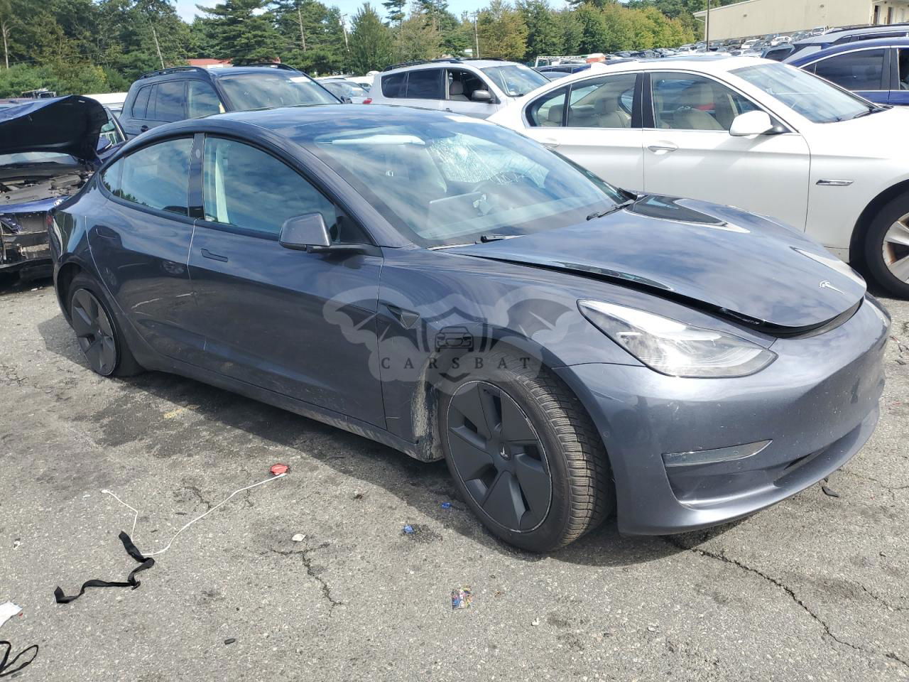 Szary Tesla Model 3 2022 roku | Elektryczny
