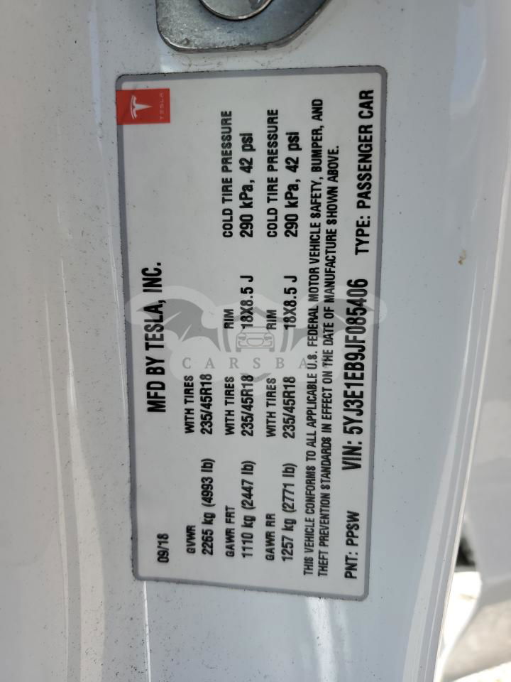 • VIN: 5YJ3E1EB9JF085406