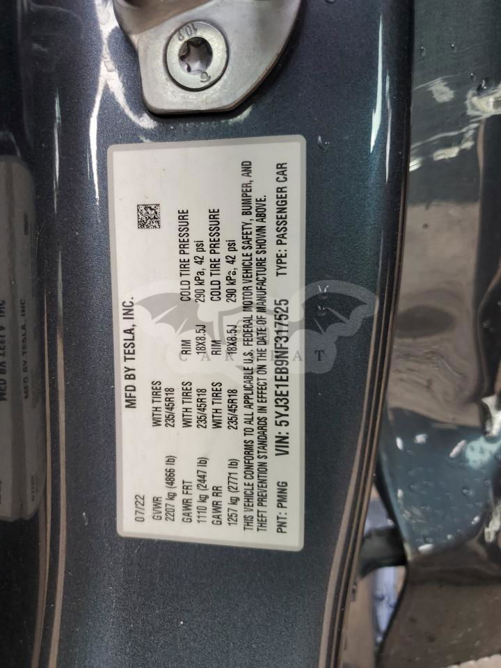 • VIN: 5YJ3E1EB9NF317525