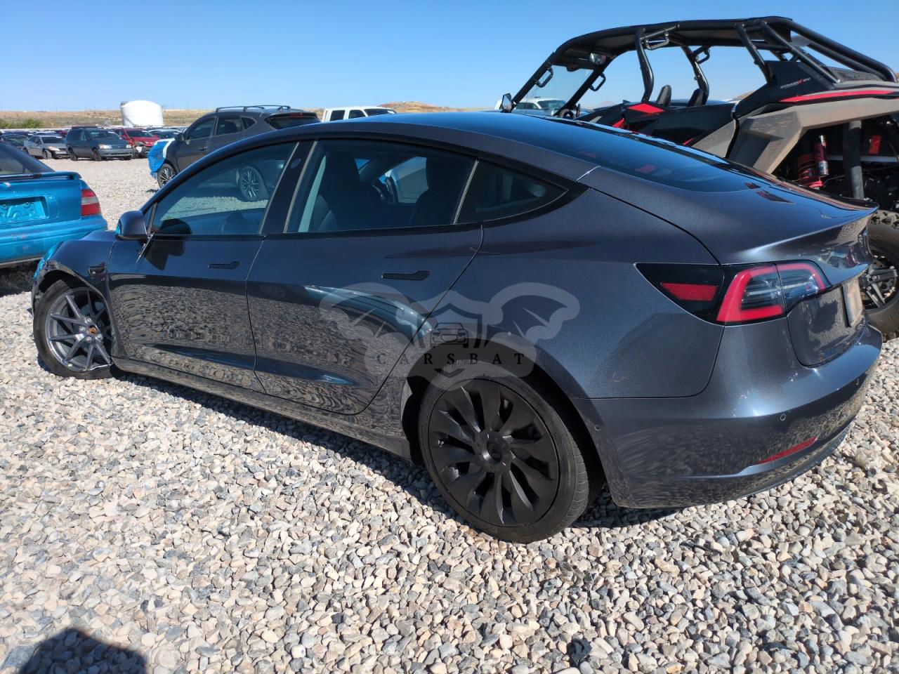 Ciemnoszary Tesla Model 3 2021 roku | Elektryczny