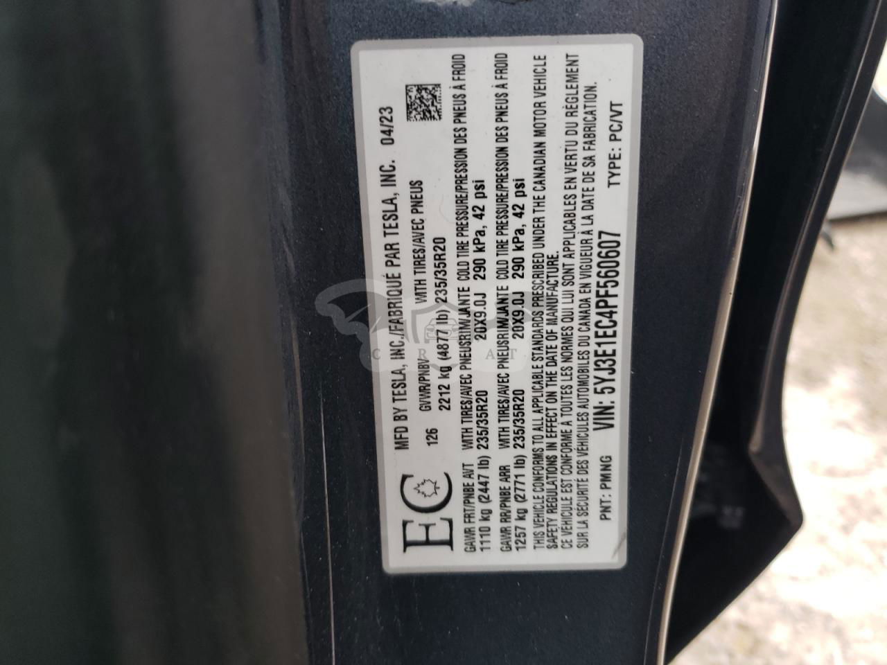 • VIN: 5YJ3E1EC4PF560607